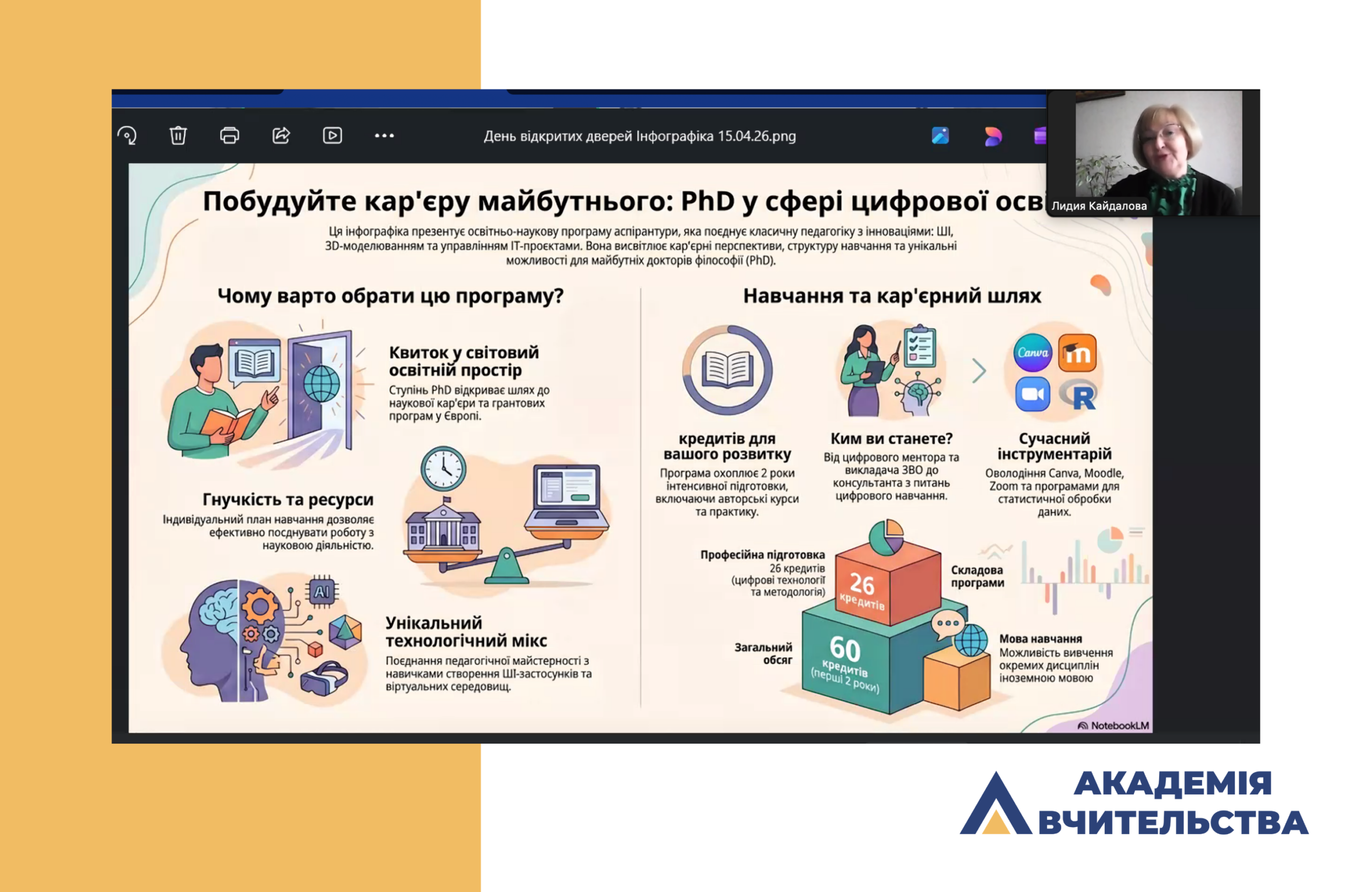 15 квітня 2026 року в онлайн-форматі відбувся День відкритих дверей ННІ «Академія вчительства» Харківського національного університету імені В. Н. Каразіна. Під час заходу майбутні вступники дізналися більше про освітні програми, особливості цьогорічного вступу, сучасні підходи до підготовки фахівців для освітньої галузі, а також отримали відповіді на хвилюючі їх запитання..