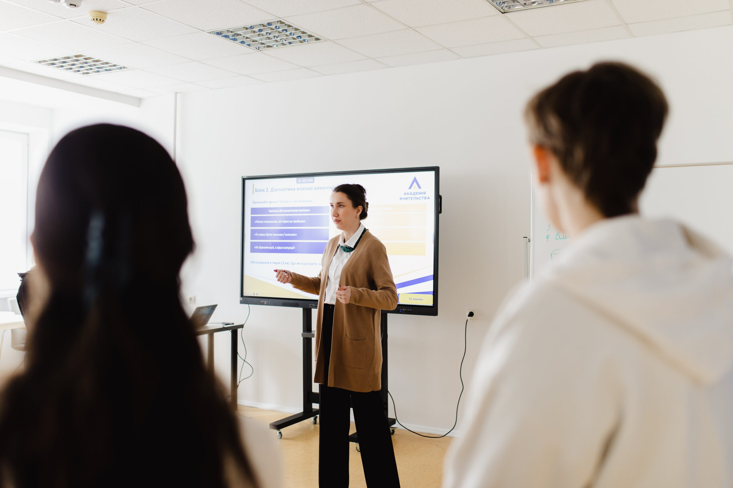 Змістовним продовженням були сесії заступника директора Академії вчительства Тетяни Головатенко, присвячені травма-інформованій комунікації та конструктивному фідбеку. Учасники досліджували, як слова можуть підтримувати, формувати довіру та ставати опорою у професійному середовищі.