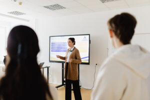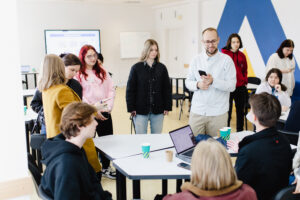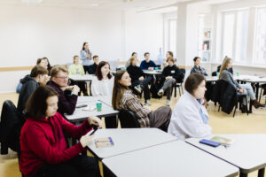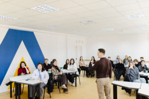 Далі відбулася сесія «Комунікація як інструмент кар’єрного старту», яку провів гостьовий лектор — піарник-практик і викладач Київського столичного університету імені Бориса Грінченка Андрій Сінько. Студенти досліджували вплив ефективної комунікації на перші професійні кроки, розглядали практичні кейси та обговорювали стратегії самопрезентації й побудови професійних зв’язків.