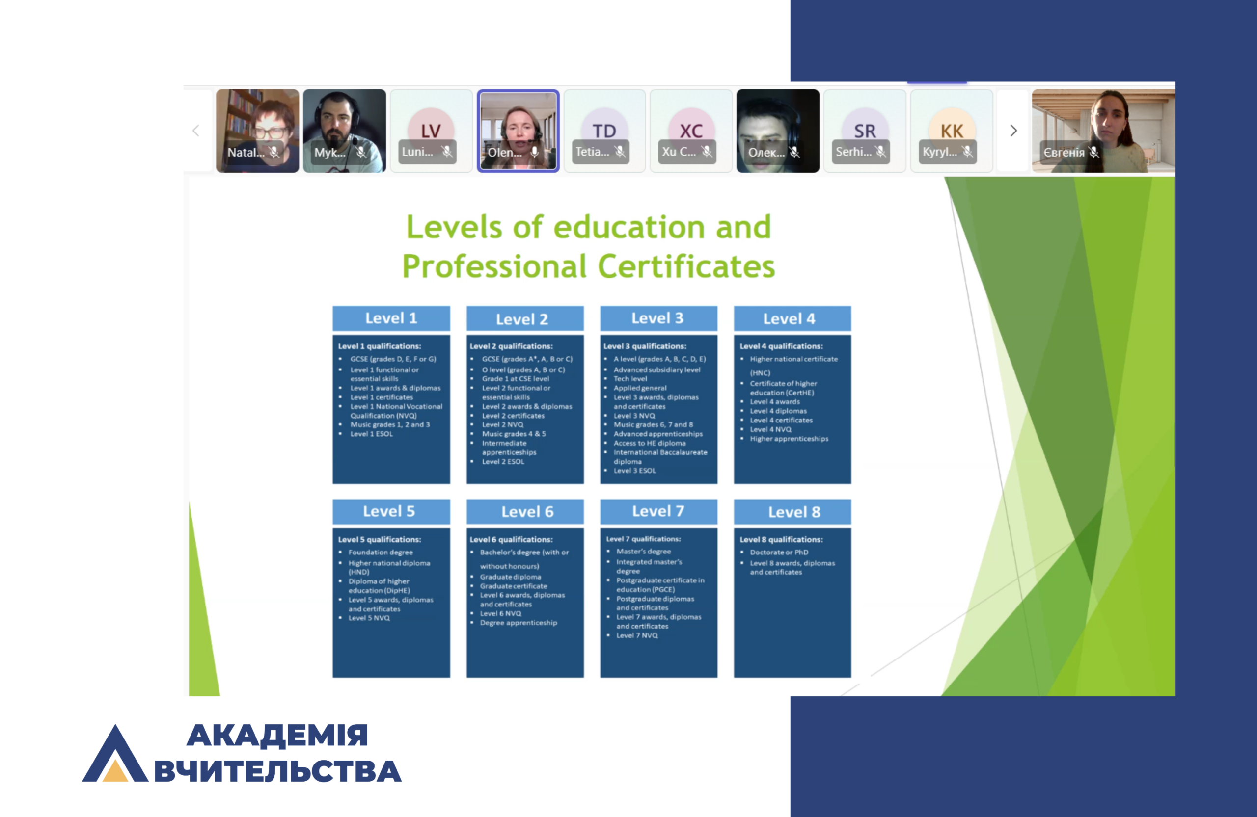 Під час лекції було висвітлено ключові аспекти британської системи освіти, зокрема рівні освіти та професійні сертифікати, особливості вступу, відмінності у викладанні, роль взаємопідтримки студентів і супроводу з боку викладацького та університетського персоналу. Окрему увагу лекторка приділила системі зворотного зв’язку, суворим академічним вимогам, етичним нормам і кодексу поведінки, а також сучасній матеріально-технічній базі університетів і практикоорієнтованим курсам, спрямованим на потреби ринку праці.