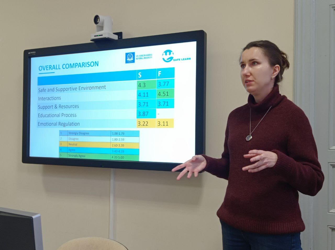 Каразінський університет представляли Тетяна Головатенко, доктор філософії, заступник директора ННІ «Академія вчительства», Тетяна Даценко, кандидат психологічних наук, заступник директора ННІ «Академія вчительства» та Інга Федотова, доктор медичних наук, професор кафедри фундаментальної медичної підготовки ІІ медичного факультету. У межах роботи партнерів ознайомили з досвідом університету щодо організації освітнього процесу в умовах воєнного часу, підходами до підтримки студентів і викладачів, а також попередніми результатами дослідження потреб академічної спільноти, зокрема у контексті впровадження травма-чутливого викладання.